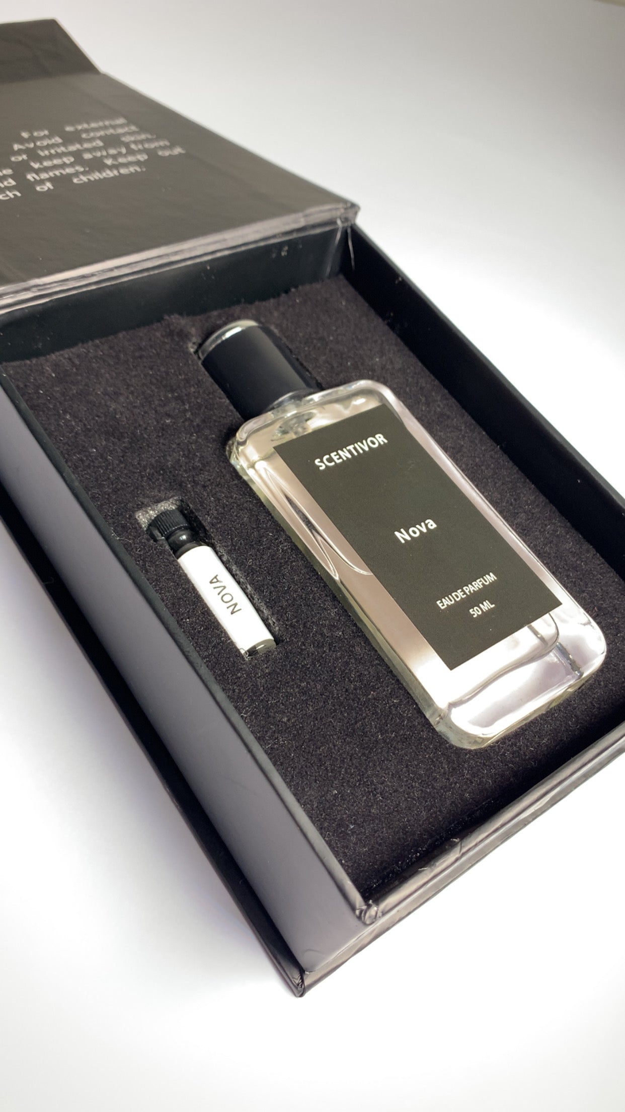 Nova is a timeless fragrance that captures freedom, strength, and sophistication in one. It opens with a wave of fresh citrus and crisp mint, immediately invigorating the senses. The heart blends aromatic lavender with warm spices and ginger, adding depth and energy. Finally, rich notes of cedarwood, sandalwood, and smoky incense settle into the base, creating a powerful and elegant trail that lasts. Bold yet refined, Nova is the scent of modern confidence.